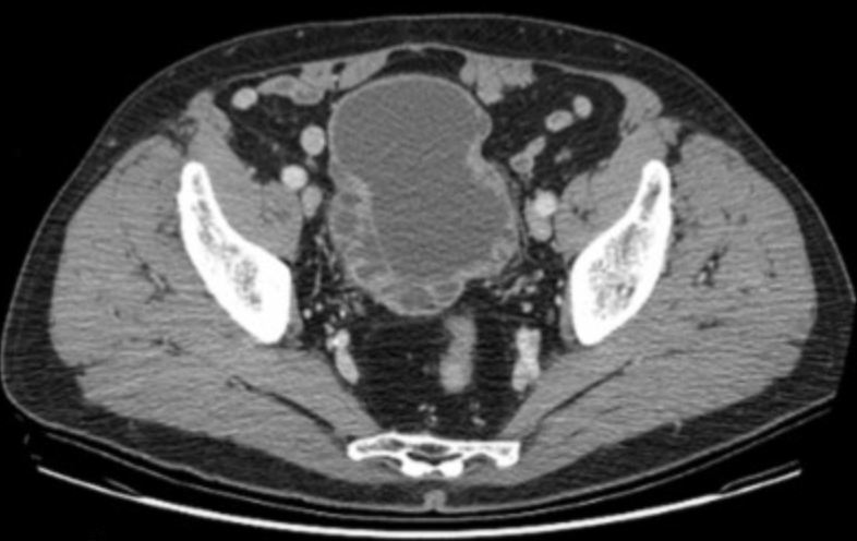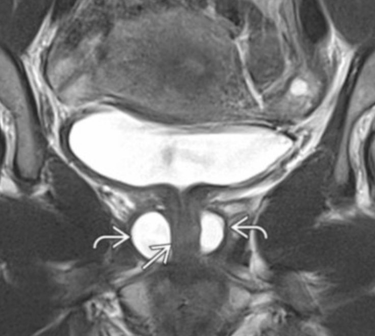 Cystic fluid collection surrounding the urethra