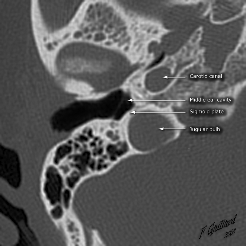 Basically there is a focal defect in the sigmoid plate that allows the jugular vein to push itself and get stuck in there