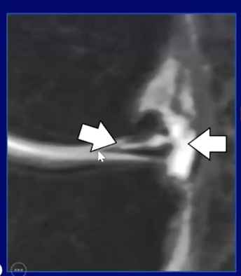Looks like a tube of fluid within the meniscus almost