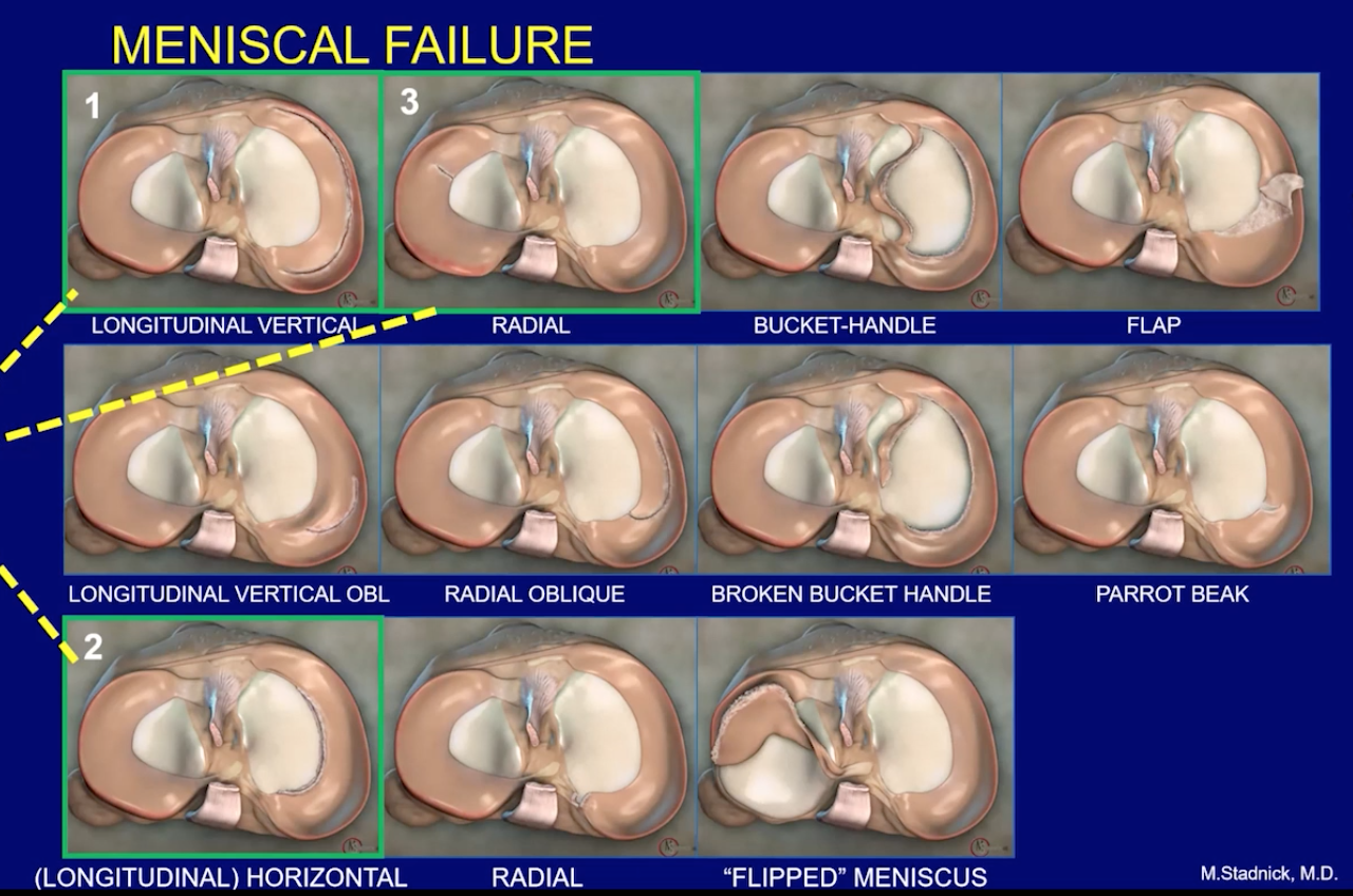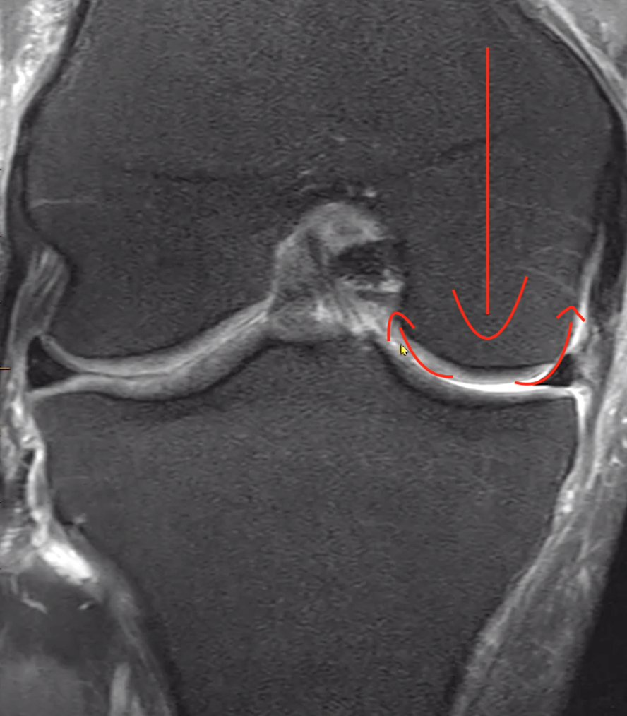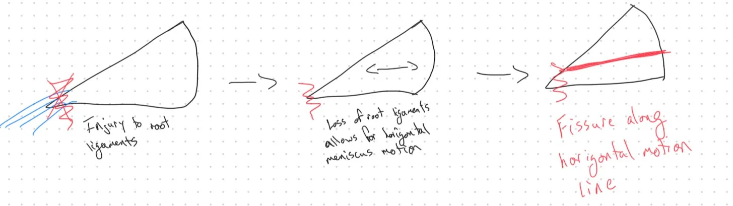 Additionally the recurrent sway medial and lateral causes a horizontal fissure within the meniscus which may they extend to the medial border where the original injury to the root ligament started