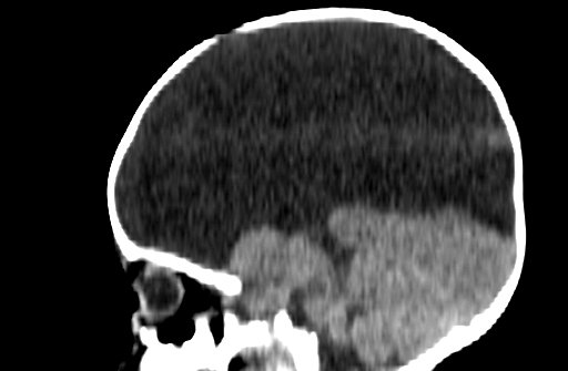 Looks like huge cyst in skull with little brain tissue