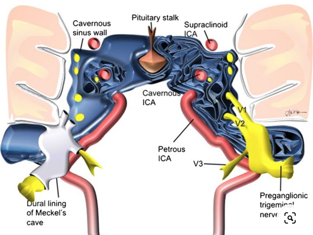 Local mass spread (nasopharyngeal, perineural spread from other area)