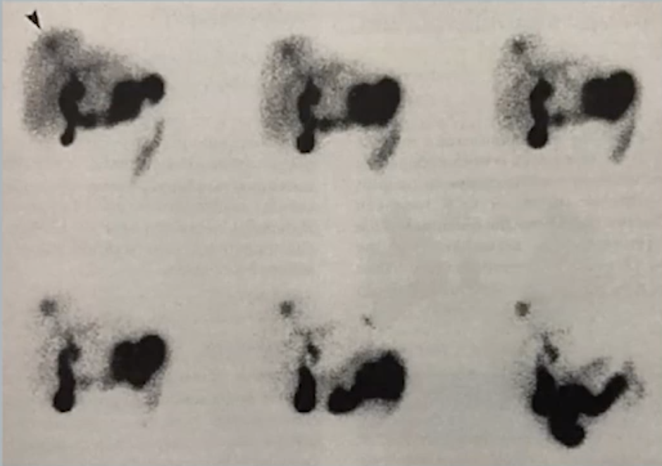 Image is garbage but basically shows uptake in liver and none in bowel