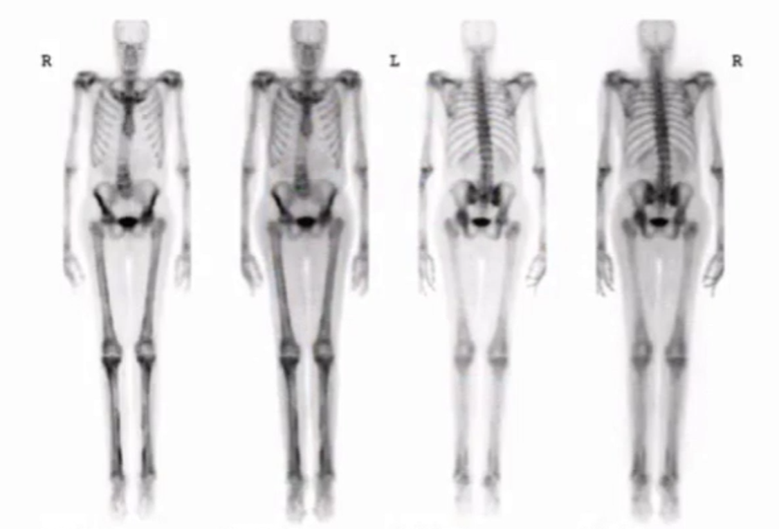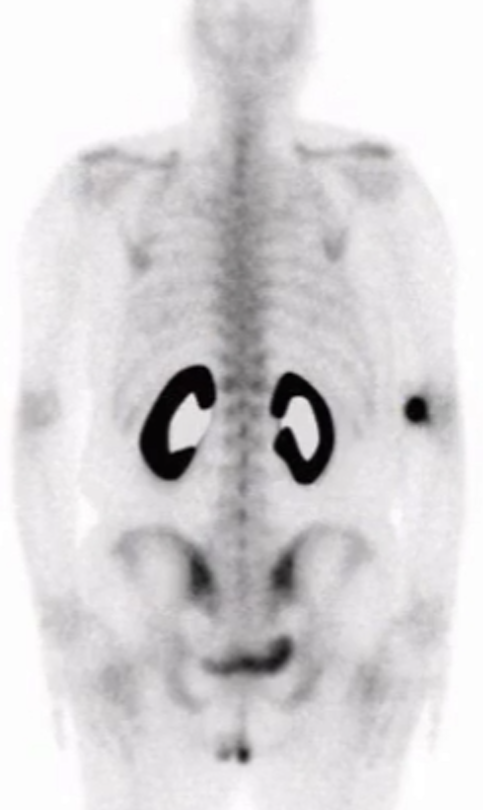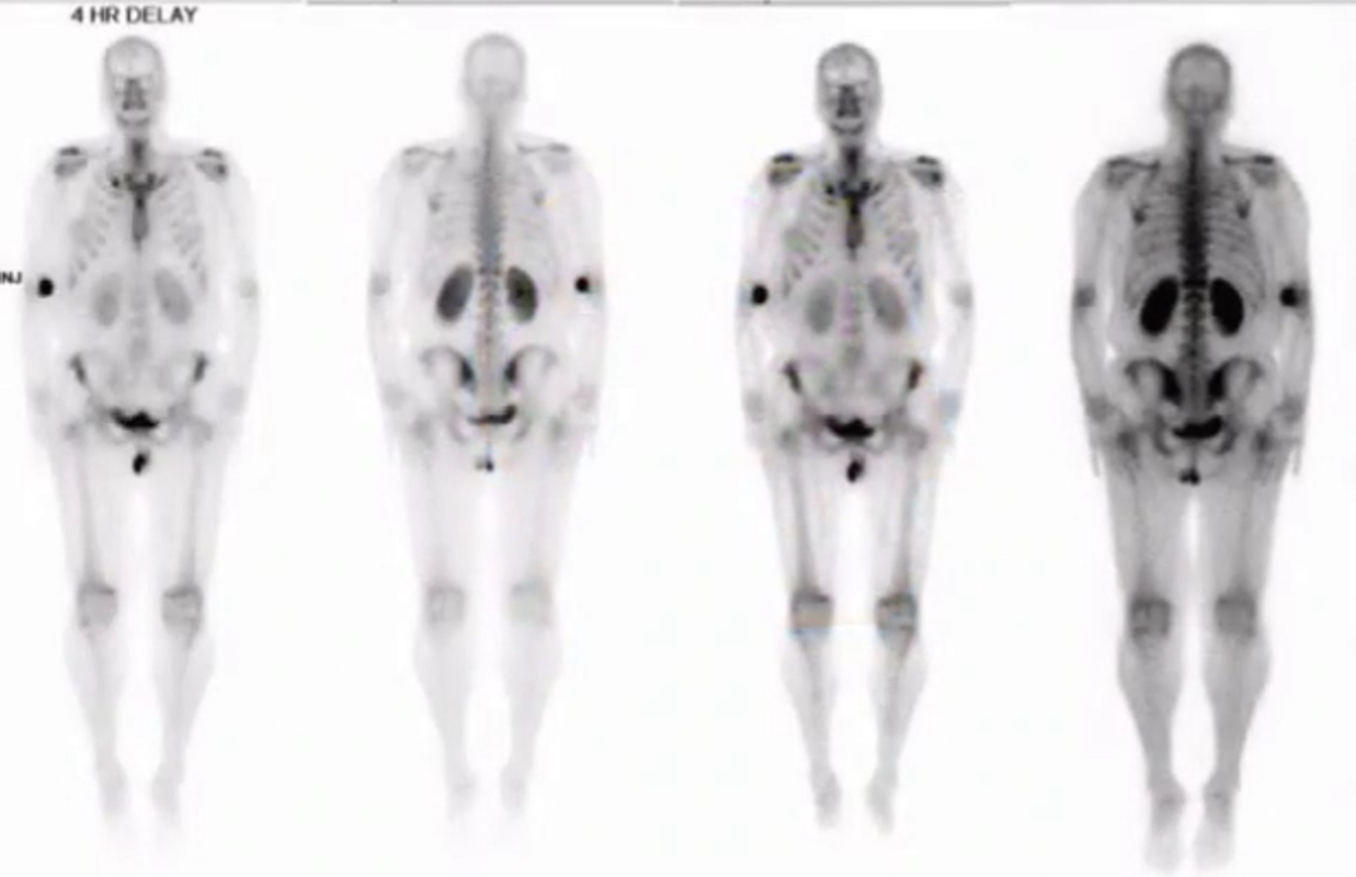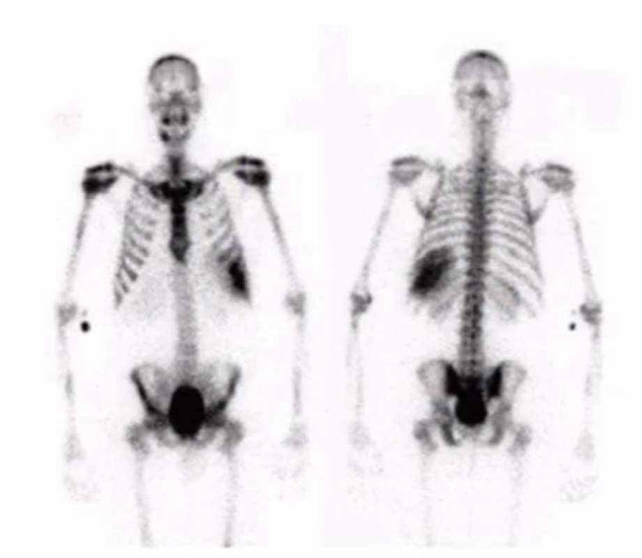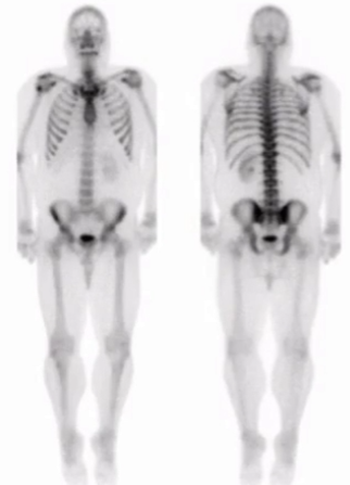 Bone scan with very hot kidneys AND whole kidneys are hot not only part of it