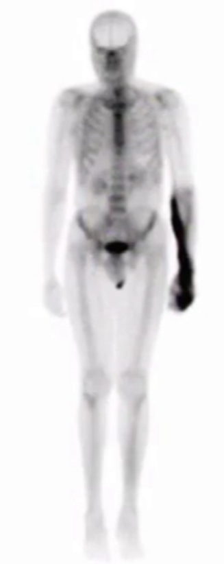 Note: looks like octreotide study but here you see bones and do not see spleen