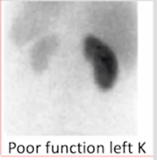 MAG 3 —> Dynamic —> secreted by proximal tubule —> cannot determine GFR —> high renal extraction from blood —> better pics