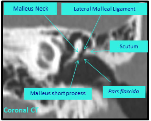 Over time the flaccida can get pushed around and create like this vacuum where flaccida is pushed inward into the ear