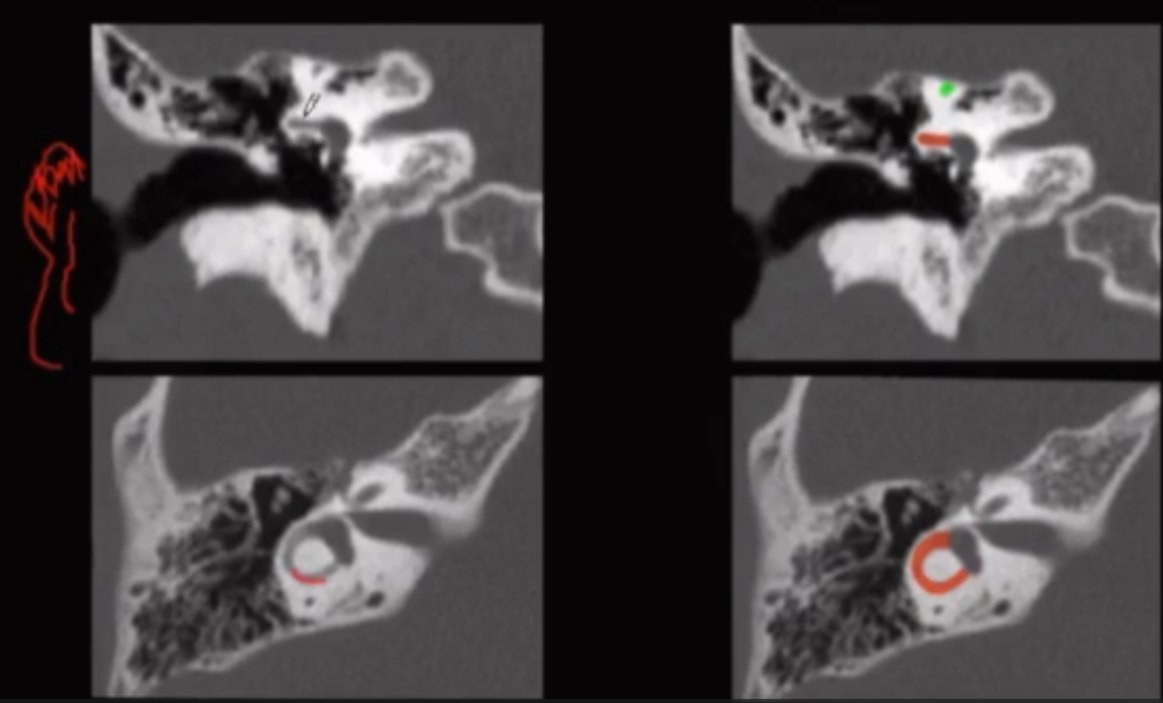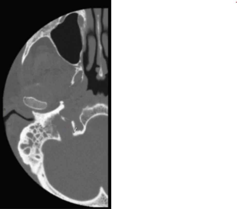 If your are missing the vertical portion in the carotid canal it will look like this where you have this soft tissue density looking thing horizontally oriented
