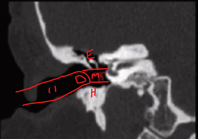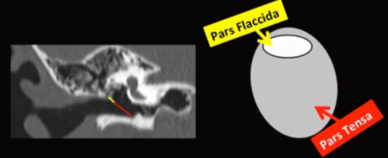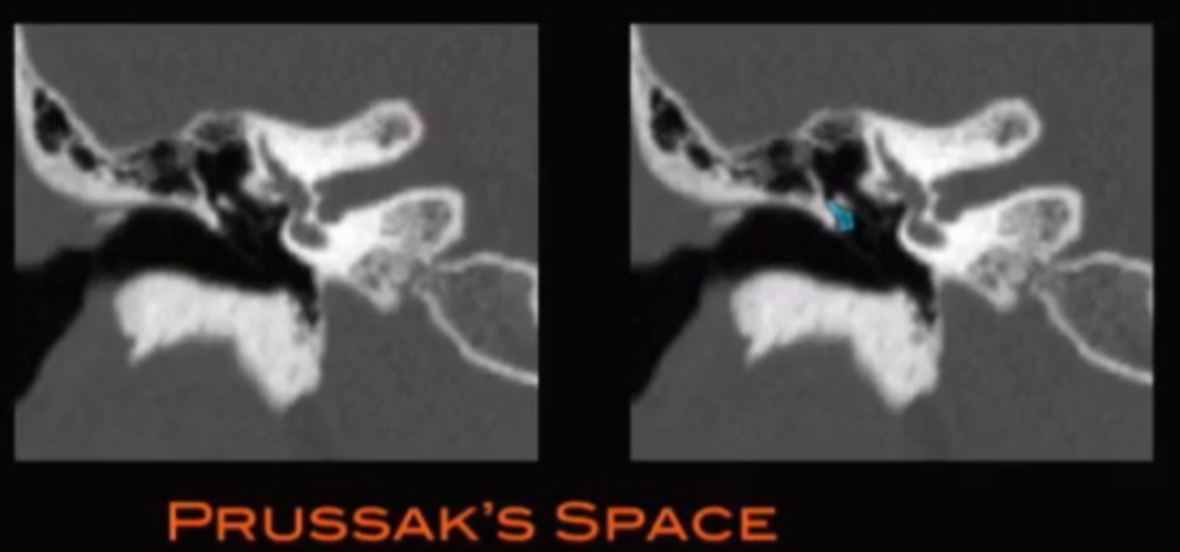 Now when the mass gets big enough it will continue to push the flaccida into the ear and remember since flaccida is at the superior aspect of the TM it will push in and upward into Prussak space