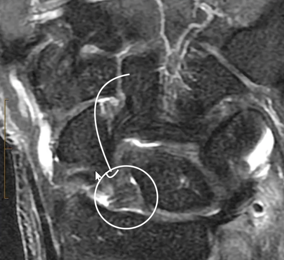 Arthritis (joint space narrowing, degen of scaphoid) at scaphoradial joint - stage 2